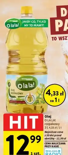 | O LA LA! Olej rzepakowy 3 l | Intermarche | 14,97 zł | 18 grudnia 2025 | 23 grudnia 2025 | |||