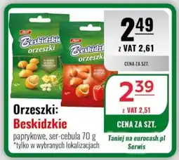 | 1 | Orzeszki: Beskidzkie 70 g | Eurocash | 2,49 zł | 2,39 zł | 0,10 zł Rabat | 16 lutego 2026 | 01 marca 2026 | Przejrzyj ofertę | |