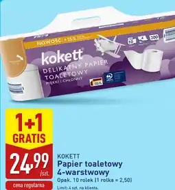 | Kokett papier toaletowy 4-warstwowy 10 rolka 1+1 gratis | ALDI | 17,49 zł | 12,49 zł | 1+1 gratis | 25 sierpnia 2025 | 31 sierpnia 2025 | |