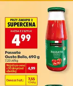 | Passata Gusto Bello 690 g | Biedronka | 7,55 zł | 5,99 zł | 1,56 zł Rabat | 15 września 2025 | 20 września 2025 | |