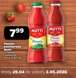 | Passata pomidorowa Mutti 700 g | Netto | 7,99 zł | 29 kwietnia 2026 | 02 maja 2026 | |||