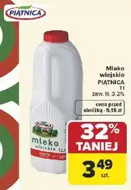 | Mleko wiejskie Piątnica 2% | Carrefour | 4,39 zł | 2,93 zł | 1,46 zł Rabat | 02 października 2025 | 04 października 2025 |