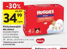 | 1 | Huggies Pieluchomajtki 30-36 szt. | Intermarche | 49,99 zł | 34,99 zł | -30% | 22 stycznia 2026 | 28 stycznia 2026 | Przejrzyj ofertę | |