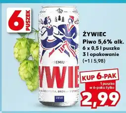| ŻUBR Piwo 6% alk. 4 x 0,5 l puszka (2 opakowania) | Kaufland | 17,56 zł | 2,69 zł | 14,87 zł Rabat | 11 lutego 2026 | 18 lutego 2026 | |