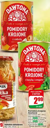 | 2 | Pomidory krojone Dawtona | Dino | 3,99 zł | 2,99 zł | 1,00 zł Rabat | 15 kwietnia 2026 | 21 kwietnia 2026 | Przejrzyj ofertę | |