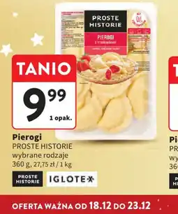 | 5 | PROSTE HISTORIE Pierogi 450 g | Intermarche | 8,99 zł | 6,95 zł | Drugi produkt -45% | 18 grudnia 2025 | 23 grudnia 2025 | Przejrzyj ofertę | |