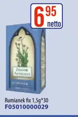| Rumianek fix 1.5 g*30 | AT | 6,95 zł | 01 marca 2026 | 31 marca 2026 | |||