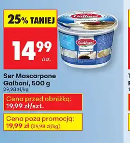 | 7 | Ser Mascarpone 500 g | Biedronka | 19,99 zł | 14,99 zł | Galbani | 19 października 2025 | 03 listopada 2025 | Przejrzyj ofertę | |