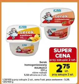 | Serek homogenizowany Rolmlecz | Carrefour Express | 3,59 zł | 2,75 zł | 0,84 zł Rabat | 25 marca 2025 | 31 marca 2025 | |