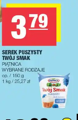 | Piątnica Serek puszysty Twój Smak 150 g | EuroSPAR | 3,79 zł | 18 lutego 2026 | 01 marca 2026 | |||