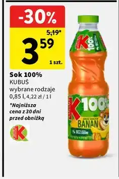 | Sok 100% KUBUŚ (0,85 l) | Intermarche | 5,19 zł | 3,59 zł | 1,60 zł Rabat | 05 lutego 2026 | 11 lutego 2026 | |
