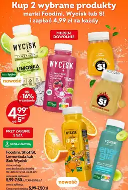 | Foodini, Shot S! Lemoniada, sok Wycisk 110-400 ml | Żabka | 5,99 zł | 4,99 zł | 1,00 zł Rabat | 22 maja 2024 | 04 czerwca 2024 | |