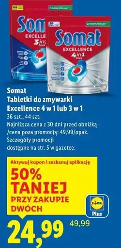 Lidl Somat Tabletki do zmywarki Excellence 4 w 1 lub 3 w 1 36 szt., 44 szt oferta