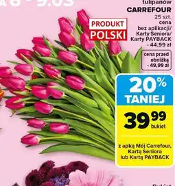 Carrefour Bukiet tulipanów 'CARREFOUR' 15 szt ofertaBukiet tulipanów 'CARREFOUR' 15 sztCarrefour29,99 zł24,99 zł5,00 zł Rabat20 stycznia 202625 stycznia 2026