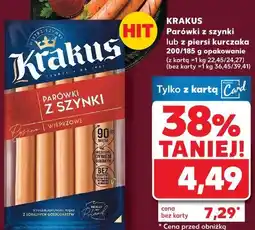 KRAKUS Parówki z szynki lub z piersi kurczaka 200/185 g opakowanie
