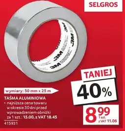 | 1 | 3M Taśma aluminiowa 1 szt | Selgros | 15,00 zł | 8,99 zł | 40% taniej | 22 stycznia 2026 | 04 lutego 2026 | Przejrzyj ofertę | |