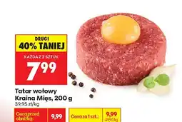 | Tatar wołowy Kraina Mięs 200 g | Biedronka | 7,99 zł | 6,49 zł | 1,50 zł Rabat | 21 września 2023 | 27 września 2023 | |