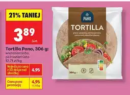 | Pano Tortilla pszenna, 306g | Biedronka | 3,99 zł | 3,29 zł | 0,70 zł Rabat | 27 grudnia 2022 | 31 grudnia 2022 | |