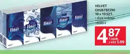 | 1 | Velvet chusteczki 10 x 10 szt. | Selgros | 5,99 zł | 4,87 zł | 1,12 zł Rabat | 19 lutego 2026 | 04 marca 2026 | Przejrzyj ofertę | |