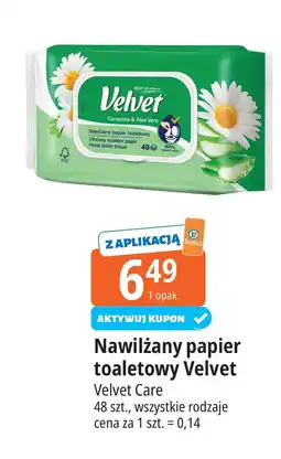 | Papier toaletowy nawilżany rumianek & aloe vera Velvet | E.Leclerc | 4,99 zł | 21 października 2025 | 31 października 2025 | |||