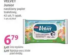 | Velvet Junior Nawilżany papier toaletowy 48 sztuk | Hebe | 8,49 zł | 6,89 zł | 1,60 zł Rabat | 31 maja 2024 | 12 czerwca 2024 | |