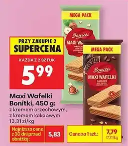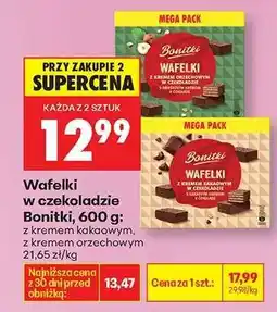 | Wafelki Bonitki 600 g | Biedronka | 17,99 zł | 12,99 zł | z kremem kakaowym, z | 19 października 2025 | 03 listopada 2025 | |