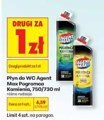 | Płyn do WC Agent Max Pogromca Kamienia, 750 ml/730 ml | Biedronka | 4,89 zł | 19 lutego 2024 | 25 lutego 2024 | |||