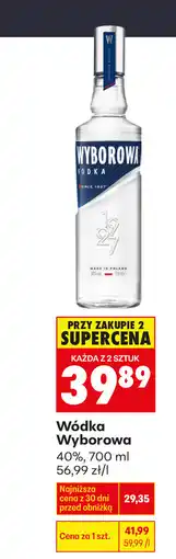 | Wódka Wyborowa 700 ml | Biedronka | 41,99 zł | 39,49 zł | 2,50 zł Rabat | 02 stycznia 2026 | 10 stycznia 2026 | |