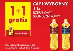 | Olej Wyborny 1 butelka | Biedronka | 1,00 zł | Druga tańsza butelka | 03 kwietnia 2025 | 09 kwietnia 2025 | ||