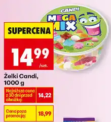 | Żelki Candi 1000 g | Biedronka | 18,99 zł | 14,99 zł | 4,00 zł Rabat | 02 marca 2026 | 07 marca 2026 | |