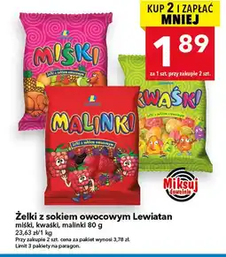 | Żelki z sokiem owocowym Lewiatan miśki, kwaśki, malinki 80 g | Lewiatan | 1,89 zł | 22 stycznia 2026 | 28 stycznia 2026 | |||