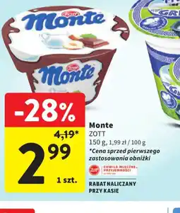 2Intermarche Zott Monte ofertaZott Monte 150 gIntermarche4,19 zł2,99 zł-28%12 marca 202618 marca 2026 Przejrzyj ofertę