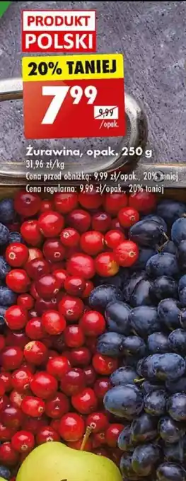 | Żurawina, opak. 250 g | Biedronka | 9,99 zł | 7,99 zł | 2,00 zł Rabat | 02 listopada 2023 | 08 listopada 2023 | |