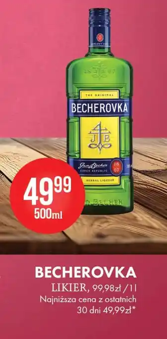 Ta promocja jest dostępna w różnych sklepach. Przejrzyj wszystkie dostępne produkty, żeby otrzymać najtańszą ofertę na Likier Becherovka. Jeśli chcesz dowiedzieć się, czy dany produkt jest dostępny na lepszej przecenie w innym sklepie, zajrzyj do kategorii „Alkohole". Te oferty również mogą cię zainteresować: Likier Becherovka, Likier Becherovka i Becherovka.