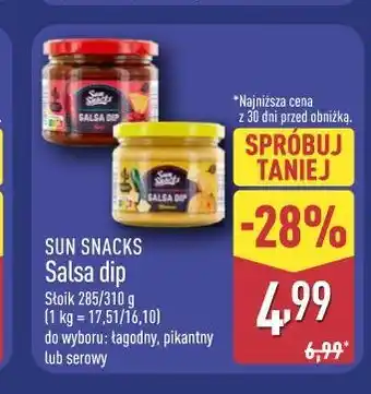 Teraz w promocji Sun Snacks Salsa dip w ALDI. Oferta ważna od 29-12 do 3-01.