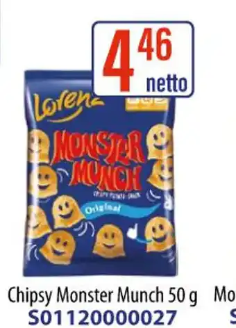 Ta promocja jest dostępna w różnych sklepach. Przejrzyj wszystkie dostępne produkty, żeby otrzymać najtańszą ofertę na Chipsy Monster Munch. Jeśli chcesz dowiedzieć się, czy dany produkt jest dostępny na lepszej przecenie w innym sklepie, zajrzyj do kategorii „Kosmetyki i Zdrowie". Te oferty również mogą cię zainteresować: Lorenz Monster Munch, Chrupki Monster Munch i Chrupki Monster Munch.