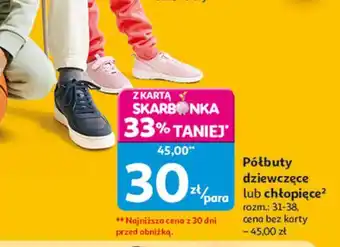 Teraz w promocji Półbuty dziewczęce lub chłopięce w Auchan. Oferta ważna od 22-01 do 28-01.