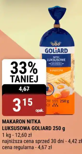 Teraz w promocji Makaron nitka luksusowa goliard w bi1. Oferta ważna od 4-02 do 17-02.