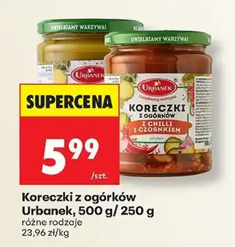 Cenę oferty na Koreczki z ogórków Urbanek różne rodzaje można sprawdzić na górze strony wraz z czasem, przez który dana promocja jest dostępna. Możesz również sprawdzić cenę w aktualnej Biedronka gazetka lub na stronie internetowej sklepu Biedronka. Oferty promocyjne gwarantują zakup produktów ze sklepu Biedronka po najniższej cenie.