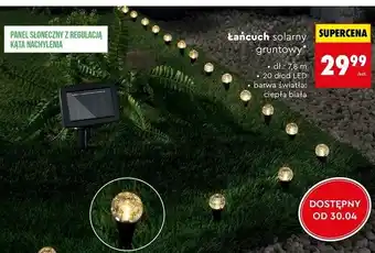 Teraz w promocji Łańcuch solarny gruntowy w Biedronka. Oferta ważna od 30-04 do 2-05.