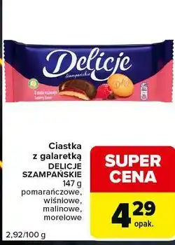 Teraz w promocji Ciastka z galaretką DELICJE SZAMPAŃSKIE w Carrefour Express. Oferta ważna od 27-04 do 2-05.