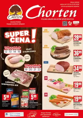 Najnowsza gazetka Chorten na ten tydzień znajduje się na górze tej strony. Ta ulotka, obowiązująca od 12-02-2026 do 22-02-2026, zawiera pełne zestawienie aktualnych katalogów Chorten. Możesz tu sprawdzić, ile stron ma gazetka i do kiedy obowiązują przedstawione w niej treści. Wszystkie informacje zostały potwierdzone przez Chorten i mają zastosowanie w różnych lokalizacjach, takich jak Białystok, Bydgoszcz i Gdańsk.