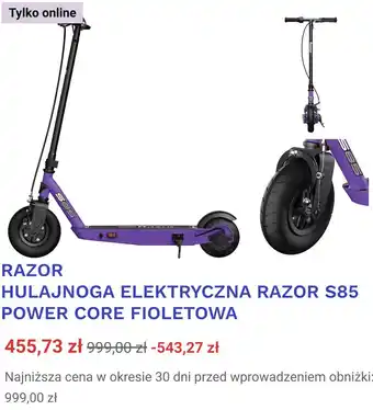 Oferty RAZOR HULAJNOGA ELEKTRYCZNA RAZOR S85 POWER CORE FIOLETOWA i promocje internetowe w Decathlon