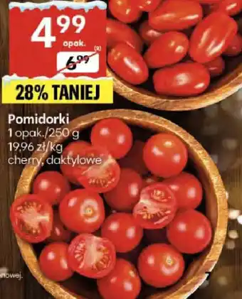 Teraz w promocji Pomidorki cherry koktajlowe w Delikatesy Centrum. Oferta ważna od 29-12 do 7-01.