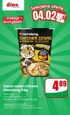 Teraz w promocji Danie nudle chicken w Dino. Oferta ważna od 4-02 do 4-02.