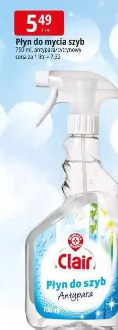 Teraz w promocji Płyn do mycia szyb cytrynowy Wiodąca Marka Clair w E.Leclerc. Oferta ważna od 9-12 do 23-12.