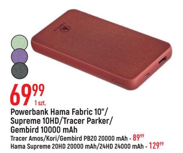 | Powerbank fabric 10 10000mah Hama | E.Leclerc | 69,99 zł | 20 sierpnia 2024 | 31 sierpnia 2024 | |||