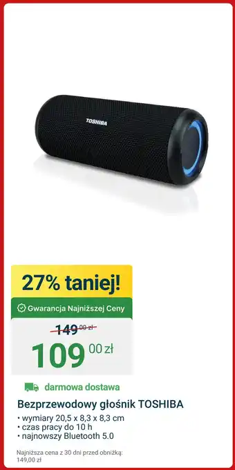 Teraz w promocji Głośnik bezprzewodowy Toshiba w ERLI. Oferta ważna od 22-12 do 4-01.