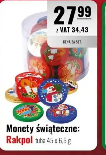 Sklep Eurocash zapewnia szeroki wybór promocji. Obserwuj cotygodniowe oferty Eurocash gazetka, żeby wyszukać najlepsze promocje i okazje. Oprócz ofert na Monety świąteczne znajdziesz także następujące promocje: Monety świąteczne: Rakpol, Monety czekoladowe Rakpol & Monety czekoladowe CHOCEUR.