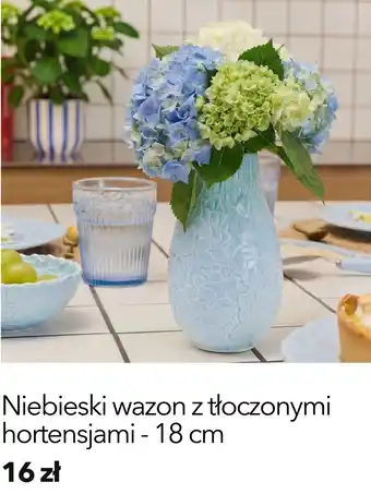 Aktualna oferta na Niebieski wazon z tłoczonymi hortensjami - 18 cm w Flying Tiger od 16-04 do 31-05.